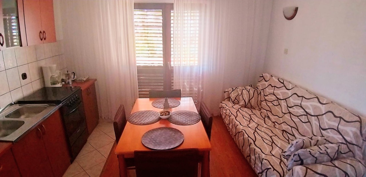 Ako tražite prekrasnu plažu za djecu u sjevernoj Dalmaciji, pronaći ćete je u mjestu Rtina Miočići. Ovaj jednosobni apartman smješten u blizini mora nudi idealan smještaj za 4 osobe (2+2). Prostire se na 40 m² i sadrži kuhinju s blagovaonicom, spavaću sobu s bračnim krevetom, kauč na razvlačenje u kuhinji, kupaonicu i malu terasu s pogledom na more. Nalazi se na prvom katu.