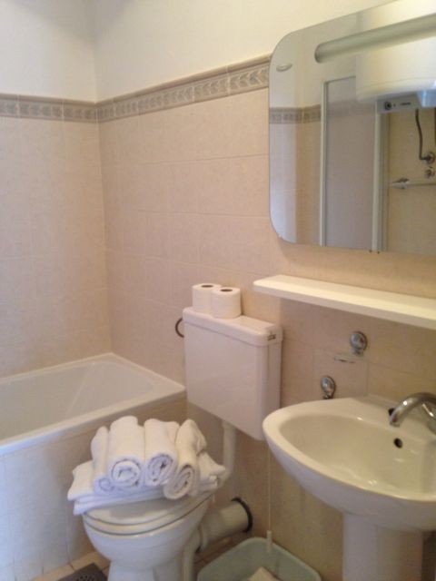 Sanitarne prostorije : kupaonica ( kada, ručnici; perilica : zajednička upotreba s iznajmljivačom, bez naknade )