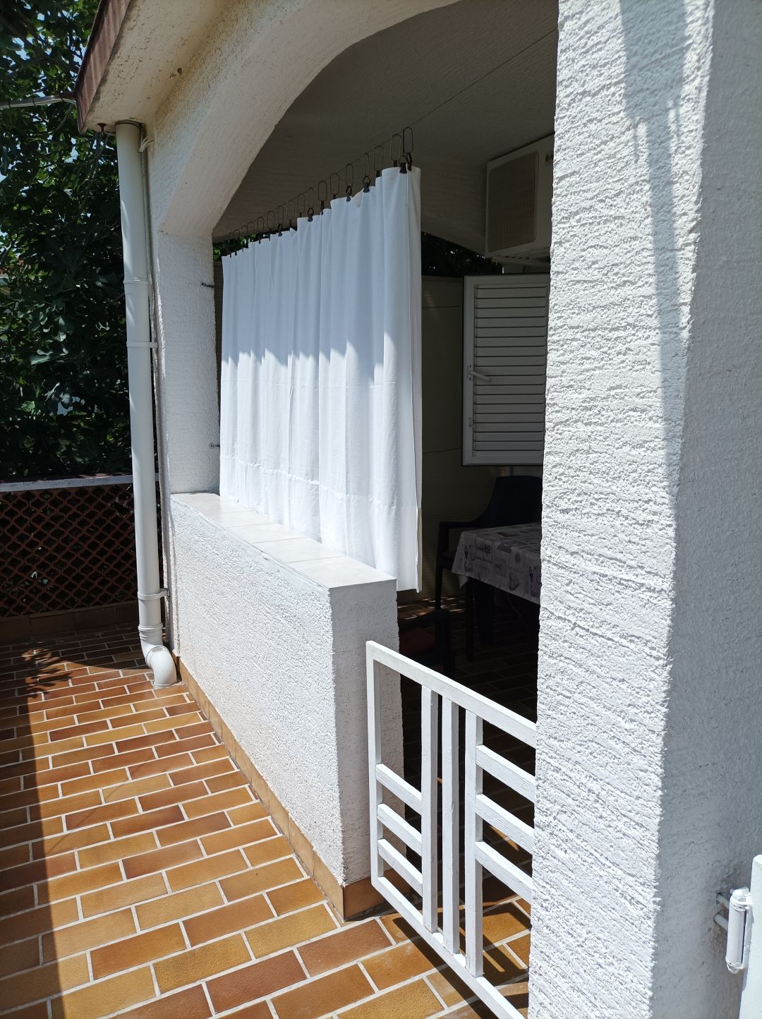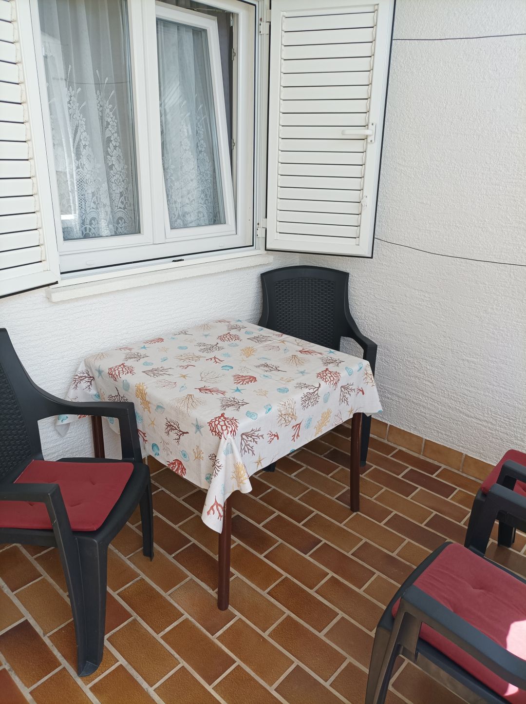Apartmanu također pripada terasa od 7 m² sa stolom i stolicama, besplatno parkirno mjesto neposredno uz kuću te vanjski zidani roštilj kojeg mogu koristiti i drugi gosti. Dovođenje kućnih ljubimaca u smještajni objekt nije moguće.